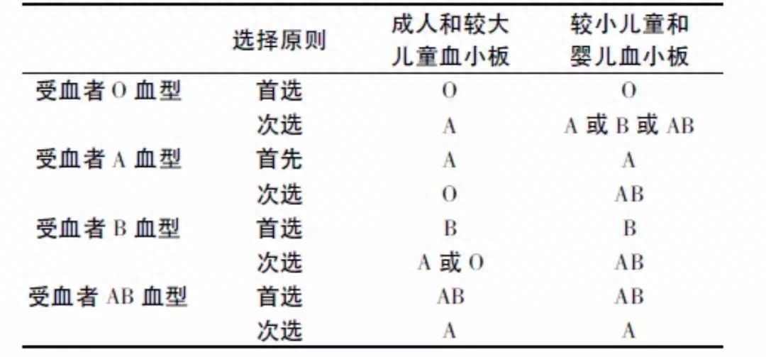 成人与儿童输注ABO血型不同单采血小板的选择原则